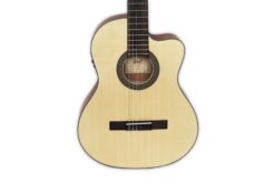 Model AC120 posiada pudło z wycięciem “cutaway”, co umożliwia dostęp do wysokich pozycji gryfu.