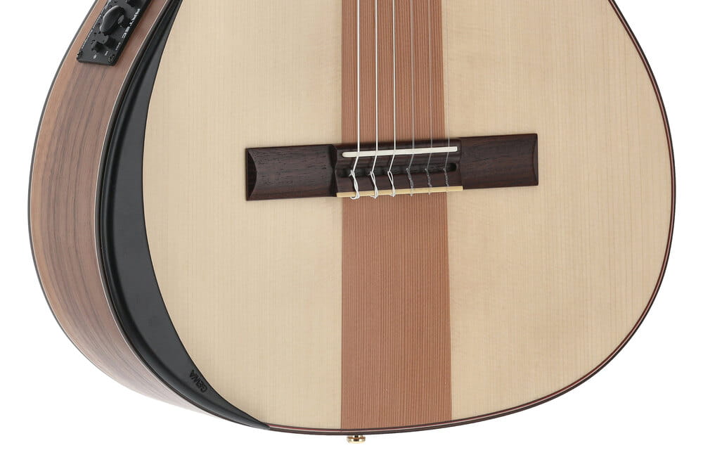 Gryf z 24 progami: Rzadkość w świecie gitar klasycznych. W połączeniu z wygodnym wycięciem (cutaway) i asymetryczną stopką, daje to swobodny dostęp do rejestrów, które w tradycyjnych modelach są nieosiągalne.